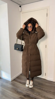 Style: Long down jacket with faux fur collar and hood, belted waist, loose and comfortable.