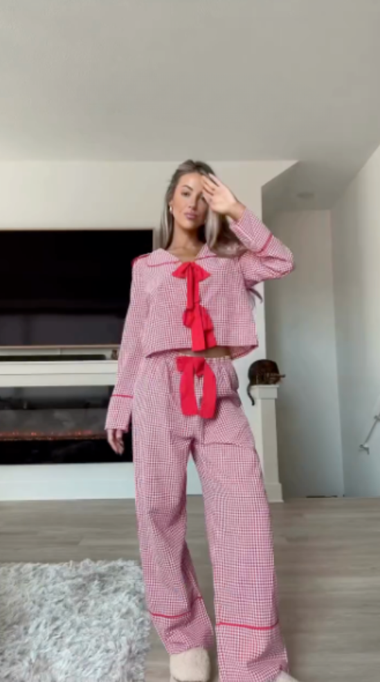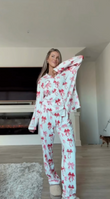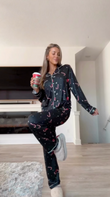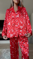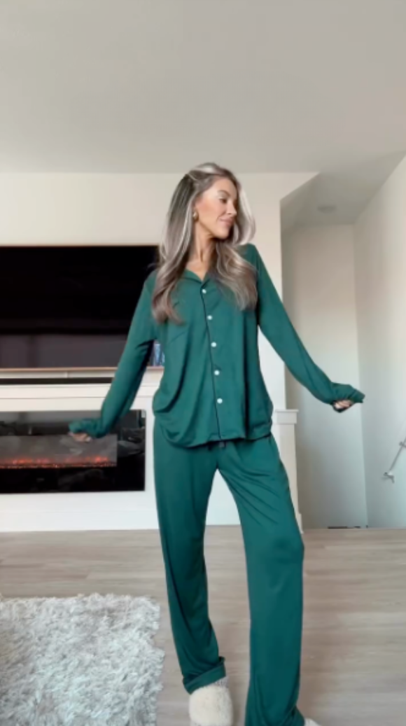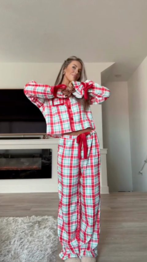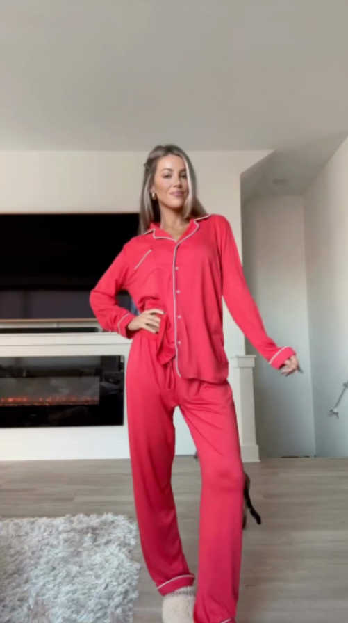 This pajama set is made of soft woven fabric, offering a comfortable and relaxed fit (button-down top + drawstring trousers). Pair it with plush slippers for ultimate relaxation and comfort at home.