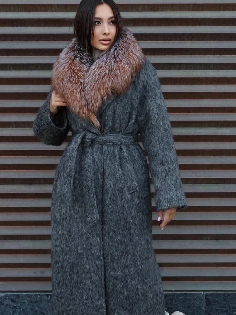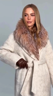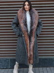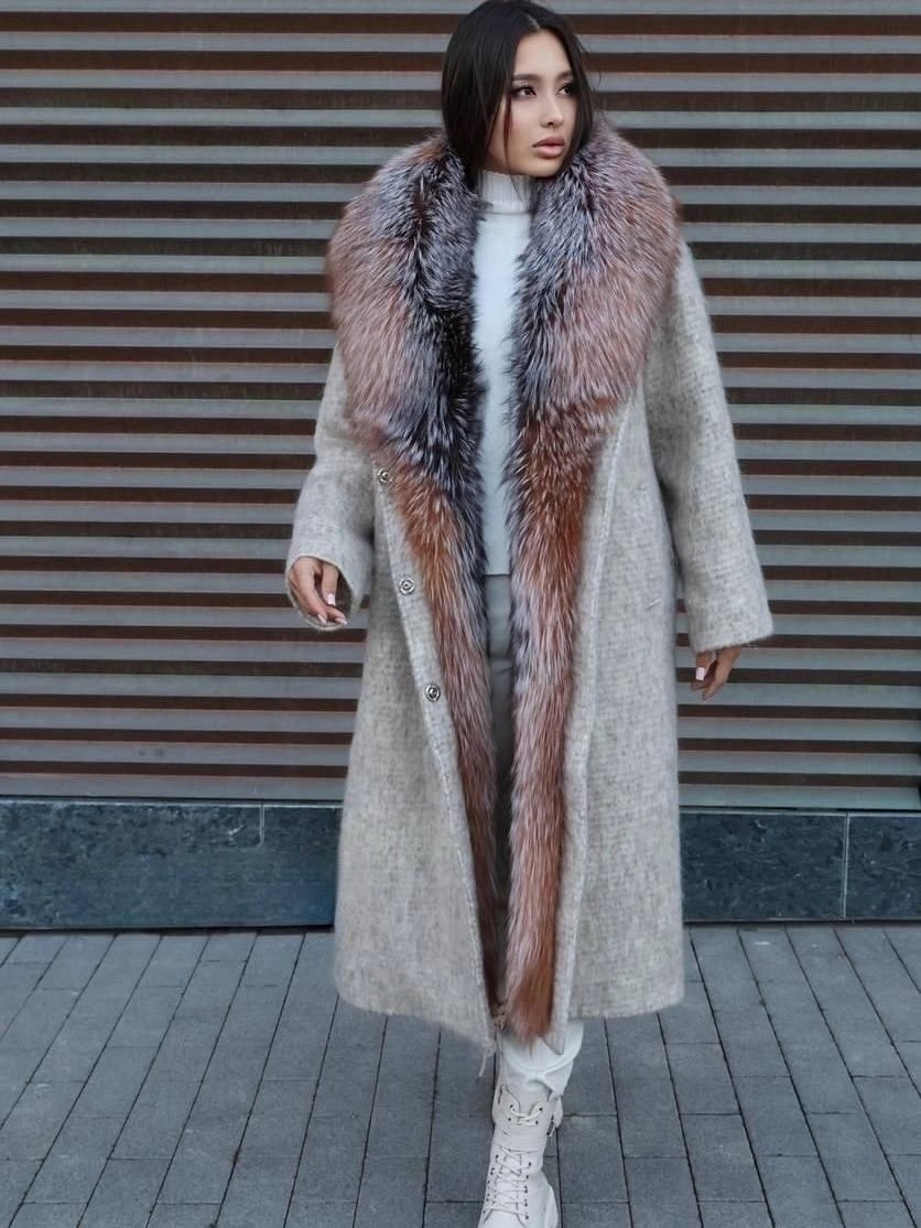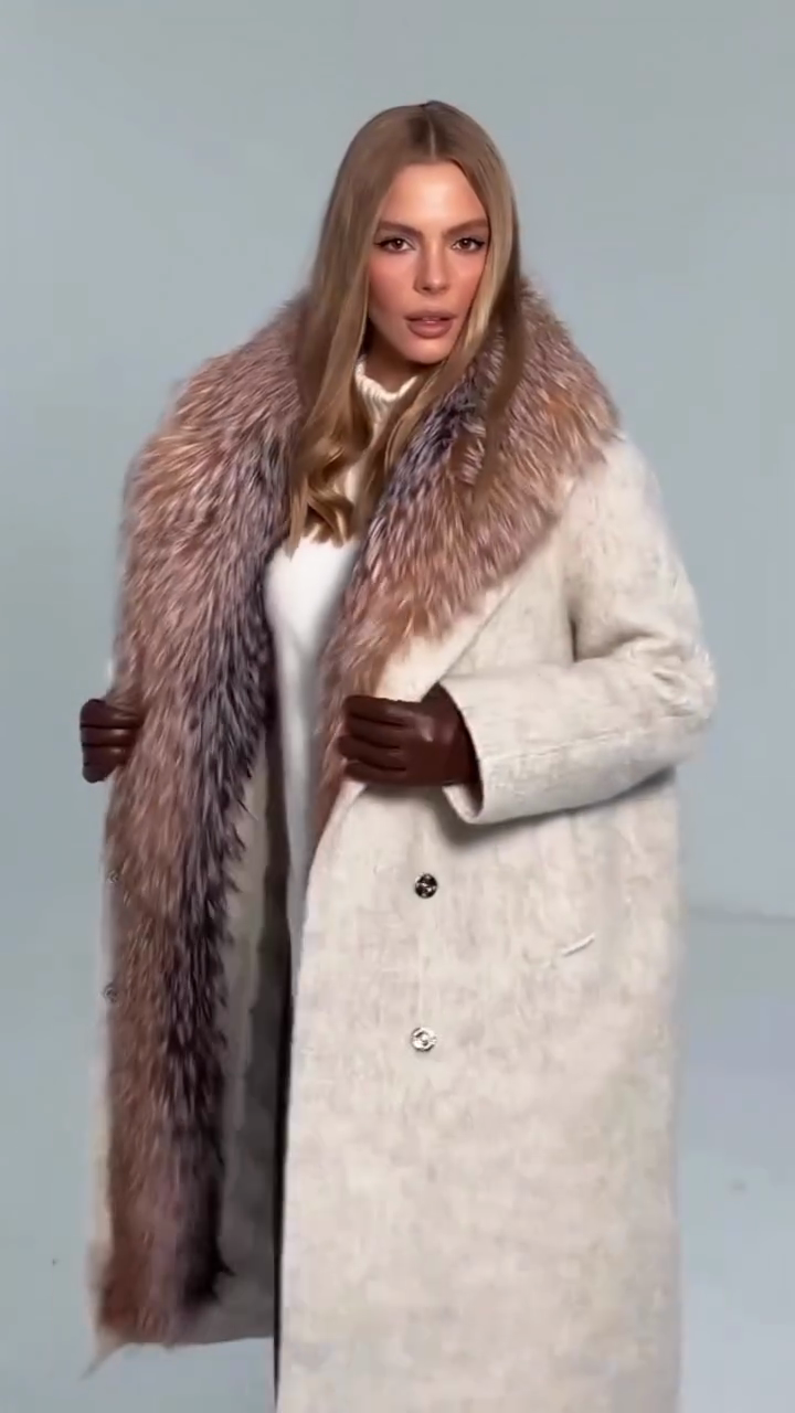 Gradient fox fur collar wool coat