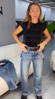 These jeans are made from washed and distressed denim, featuring a high-waisted cut, a relaxed straight leg, and a classic five-pocket design. Pair them with a fitted black T-shirt and chunky sneakers for an effortlessly stylish look.