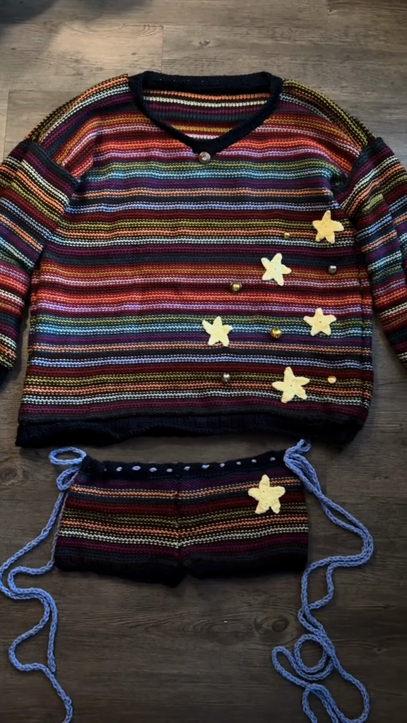 Multi-colored striped knit sweater set