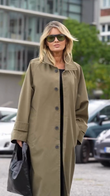 This olive green trench coat features an oversized silhouette for a casual yet stylish look. The elongated fit and classic button-front closure add to its timeless appeal, making it a versatile layering piece.