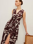 Abstract Print Wrap Dress With Tie Waist