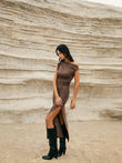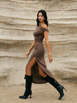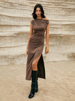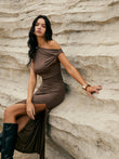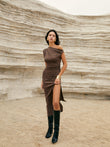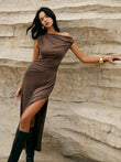 Asymmetric One-Shoulder Split Knit Long Dress