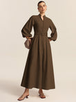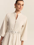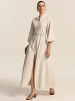 Belted Button Front Maxi Dress