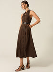 Belted Button-Front Midi Dress
