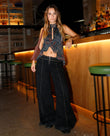 Black studded wide-leg jeans