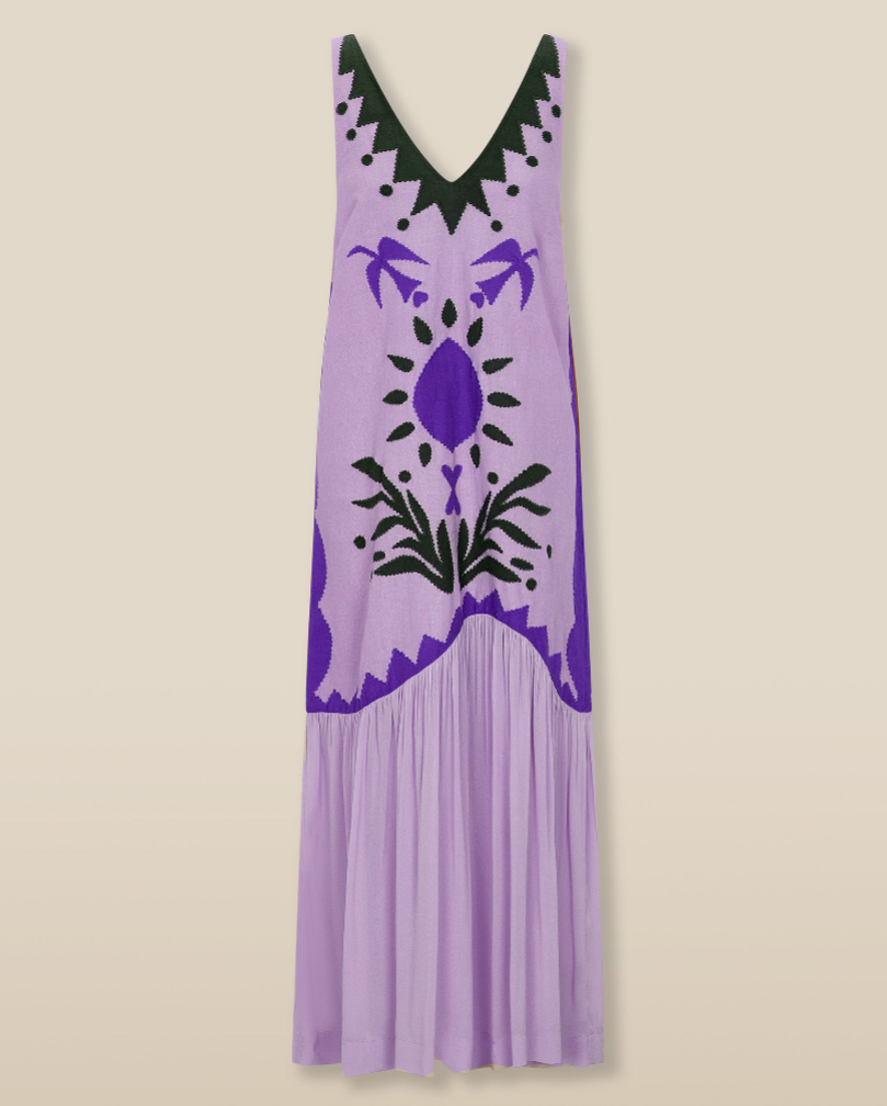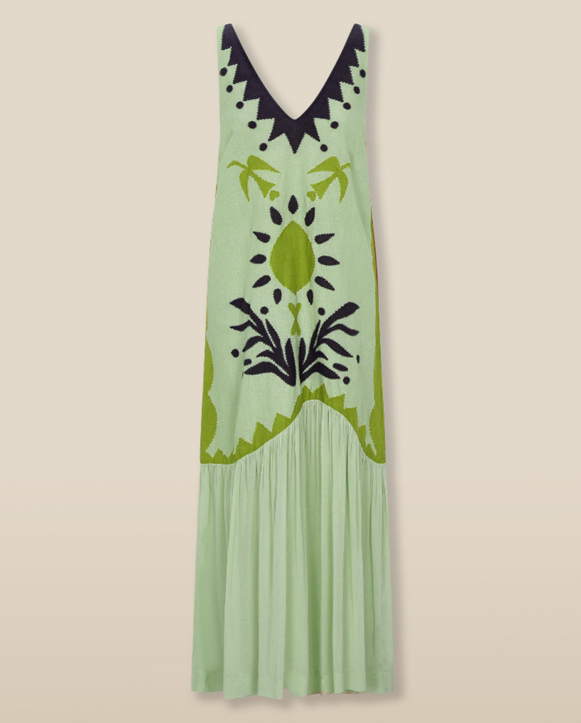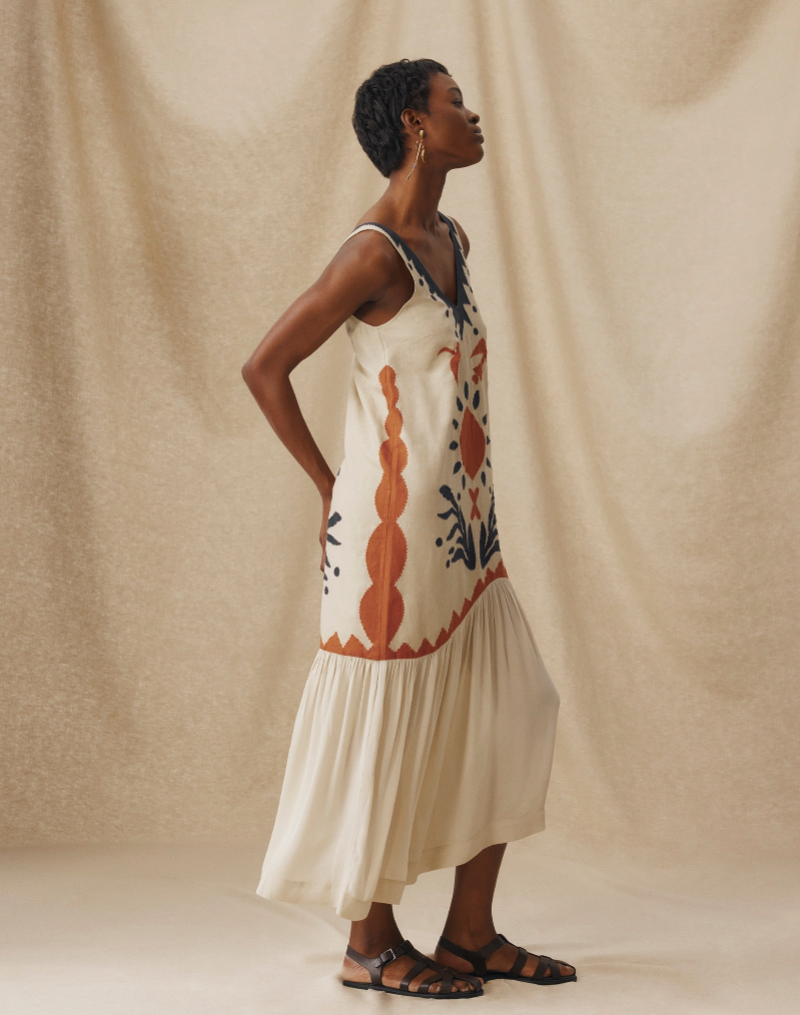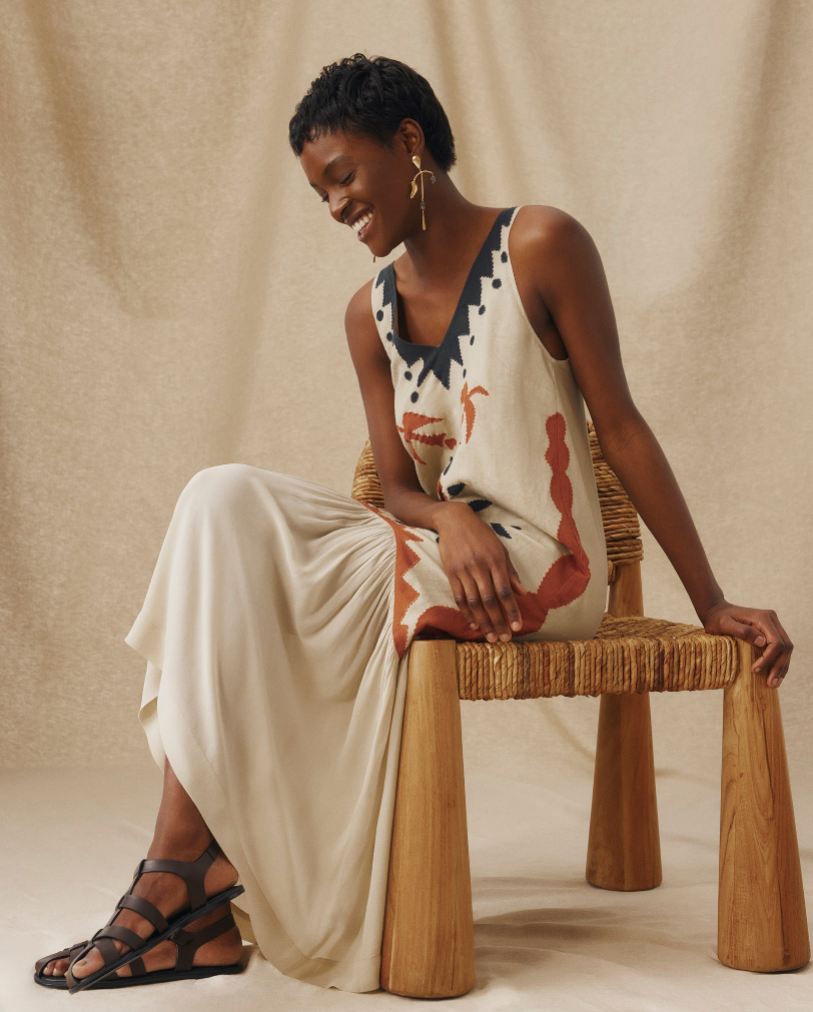 This bohemian print sleeveless midi dress elevates the casual bohemian style with its vibrant pattern and natural charm.