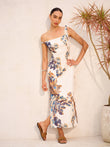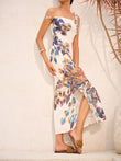 Boho Print Asymmetrical Neck Zipper Split Dress