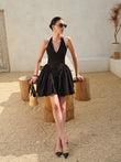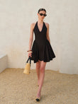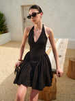 Bow Tie Pleated Halter Dress