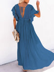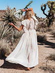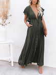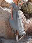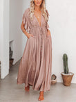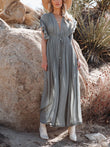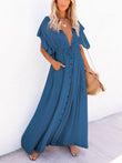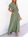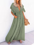 Button Cotton Linen Perfect Beach Boho Maxi Dress