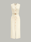 Button-Front Belted Maxi Dress