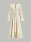 Button Front Belted Midi Dress