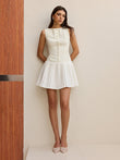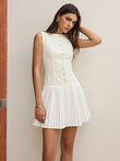 Button-Front Panel Pleated Hem Mini Dress