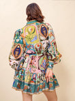 Urban Chic: This mini dress is adorned with graffiti evergreen prints. giving it a bold and urban edge. The vibrant colors and abstract designs create a statement-making look that is sure to turn heads wherever you go.