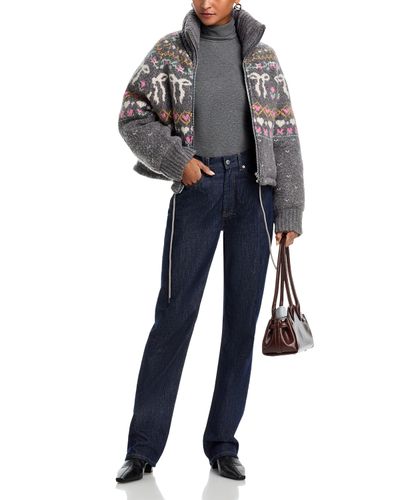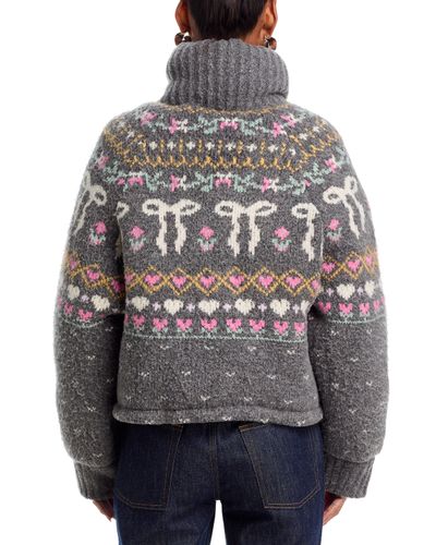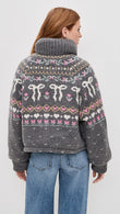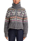 Charcoal Grey Fair Isle Knit Zip-Up Jacket
