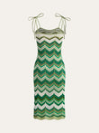 Chevron-Patterned Tie-Strap Knit Midi Dress