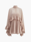 Semi-Sheer Chiffon Ruffle Dress With Outer Cape