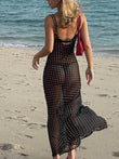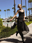Chiffon Sheer Polka Dot Print Backless Long Dress