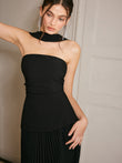 Choker Design Pleated Panel Dress