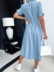 Collar Buttoned Slim Fit Denim Dress