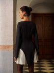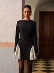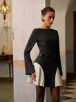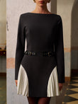 Color Block Side-Pleated Belted Short Dress