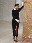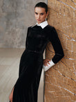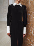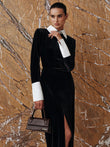 Contrast Panel Slit Long Sleeve Velvet Maxi Dress
