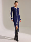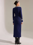Contrast Trim Button Front Slim Fit Midi Dress
