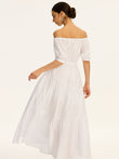 Cotton Off-Shoulder Short-Sleeve Maxi Dress
