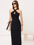Cross-Over Neckline Knit Maxi Dress