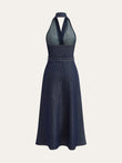Denim Belted Halter Neck Midi Dress