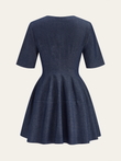 Denim Short Sleeved Zip-Front Mini Dress