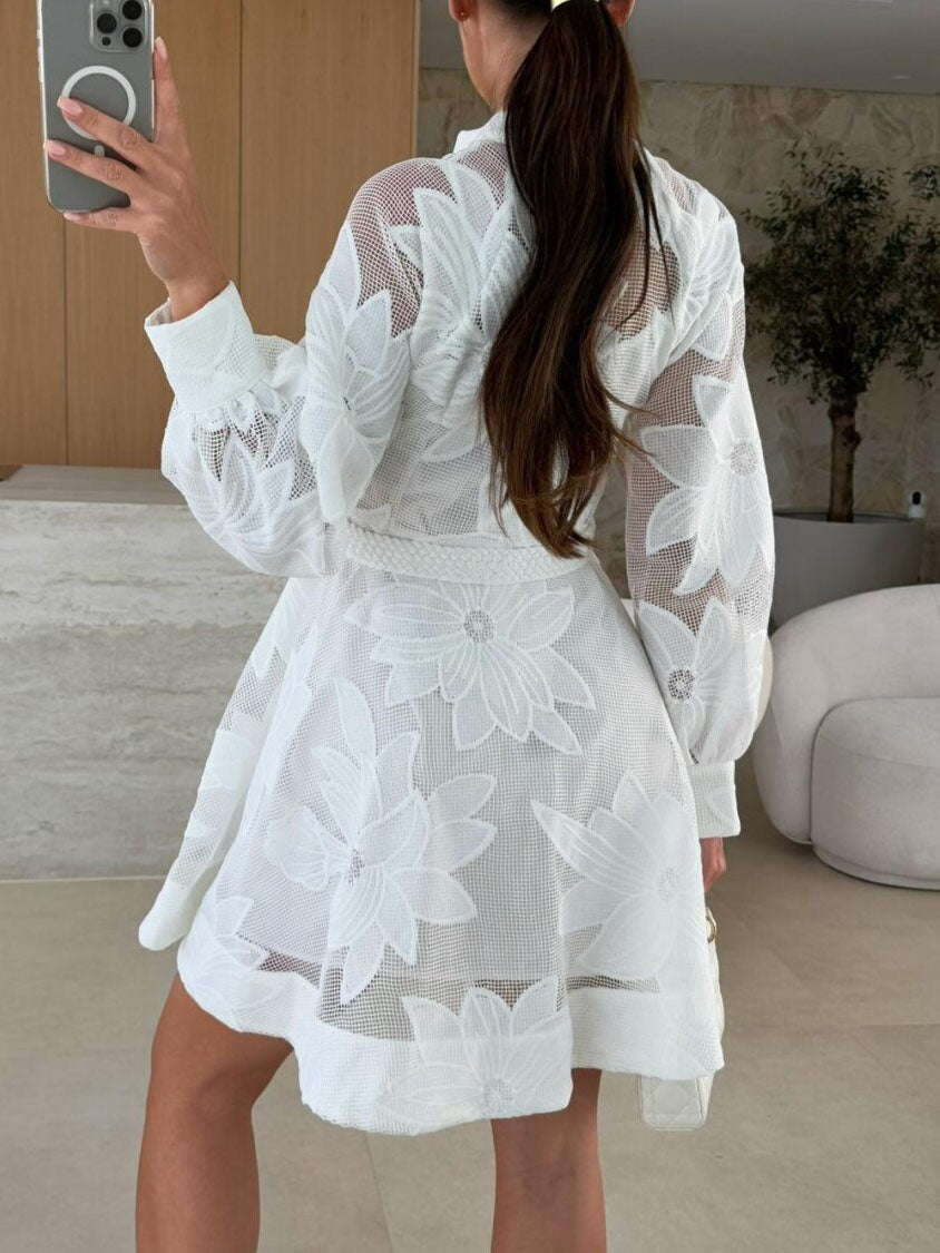 Elegant Floral Embroidered Lace Mini Dress