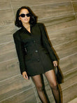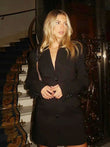 This high-waisted V-neck suit dress combines sophistication with modern style. The tailored fit highlights the waistline, and the structured design and deep V neckline create a sophisticated and sexy silhouette.