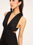 Semi-Sheer Eyelet Backless Criss-Cross Midi Dress