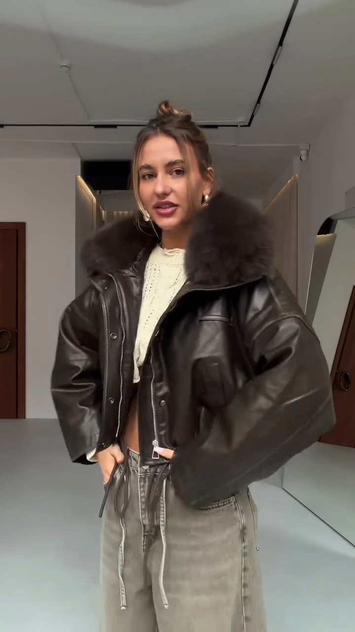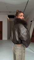 Faux Leather Jacket with Faux Fur Collar