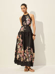Floral Print Halter Neck Dress With Cut-Out Detail