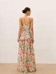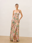 Floral Print Ruched Cami Dress With High Split