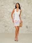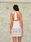 Floral-Printed Halter Neck Tie-Back Mini Dress