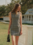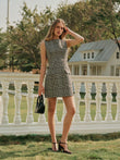 Houndstooth Tweed Zipper Dress
