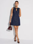 Keyhole Neckline Button Denim Mini Dress