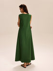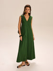 Linen & Cotton Pocketed V-Neck Maxi Dress
