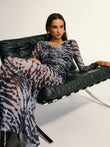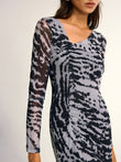 Long Sleeve Ruched Abstract Print Dress
