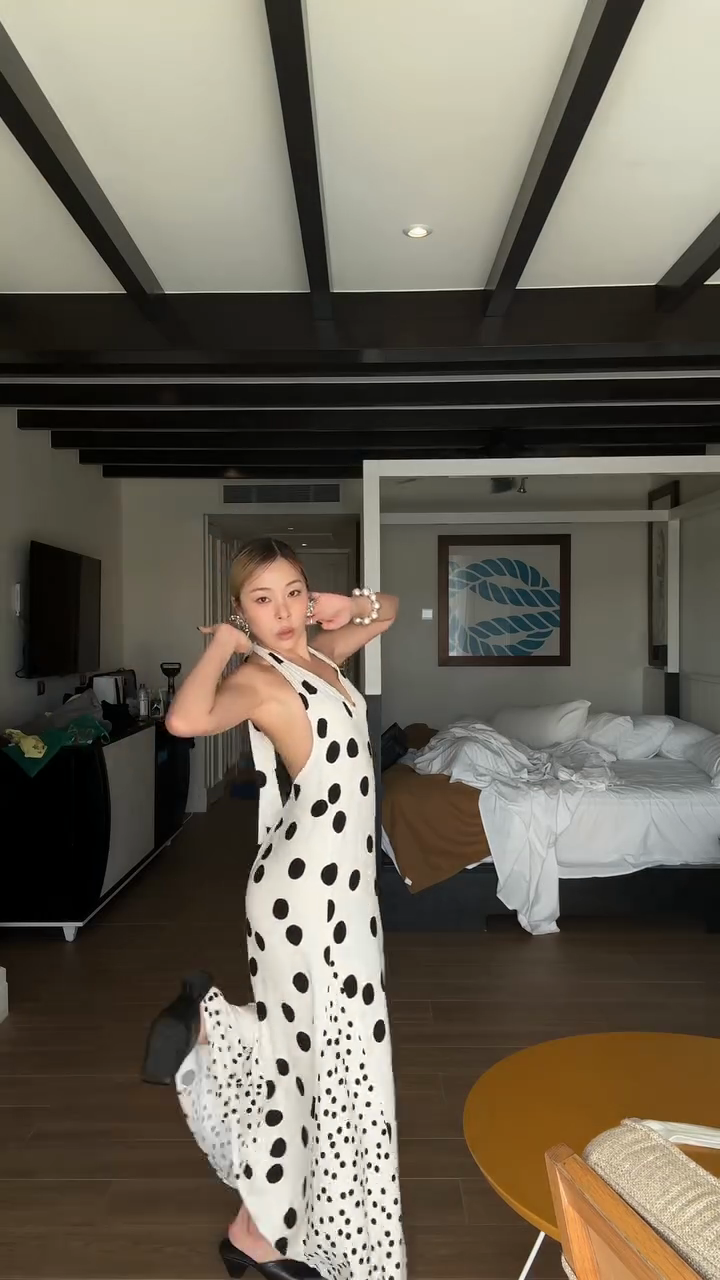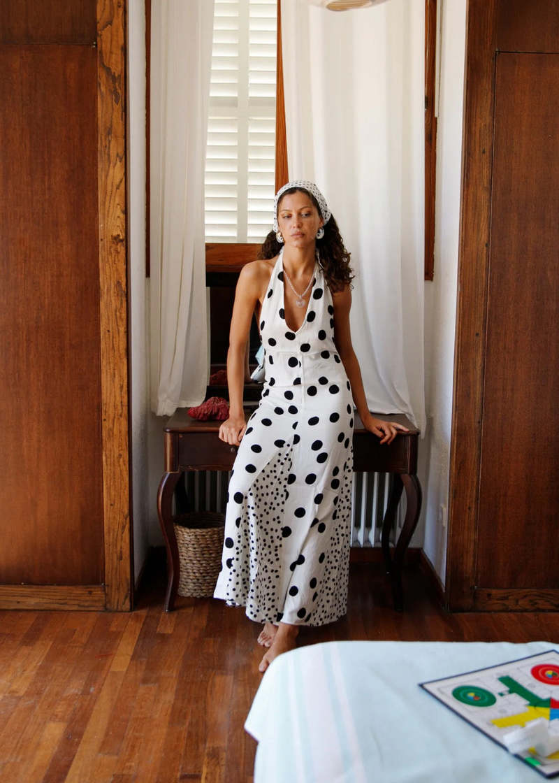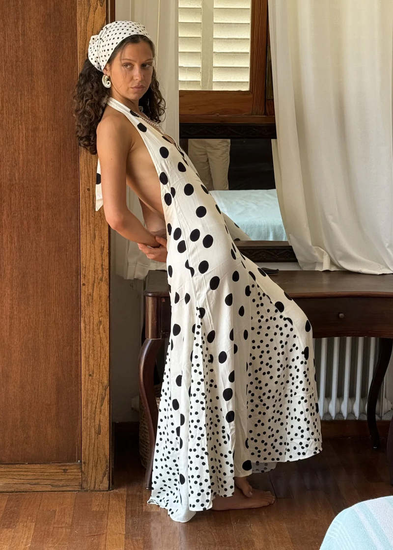 Halter Neck Polka Dot Maxi Dress