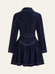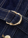 Metal Button Belted Denim Flare Mini Dress