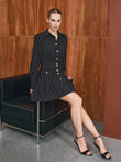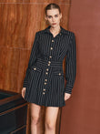 Metal Button Pinstripe Shirt Dress