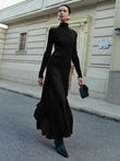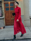Mock Neck Pleated Panel Sweater Dress