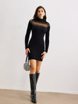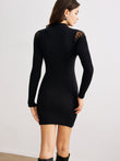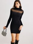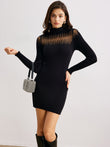 Mock Neck Sheer-Detail Slim Sweater Dress
