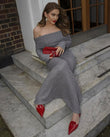 Off Shoulder Fit Knitted Maxi Dress