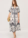 Boho Floral V-Neck Midi Dress